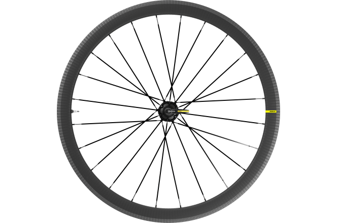La forme de la jante de 40 mm inspirée du NACA minimise la traînée pour une vitesse accrue. L'inertie réduite de la jante légère permet une accélération instantanée. Les rayons plats à double butée permettent de réduire le poids et d'améliorer la réactivité.